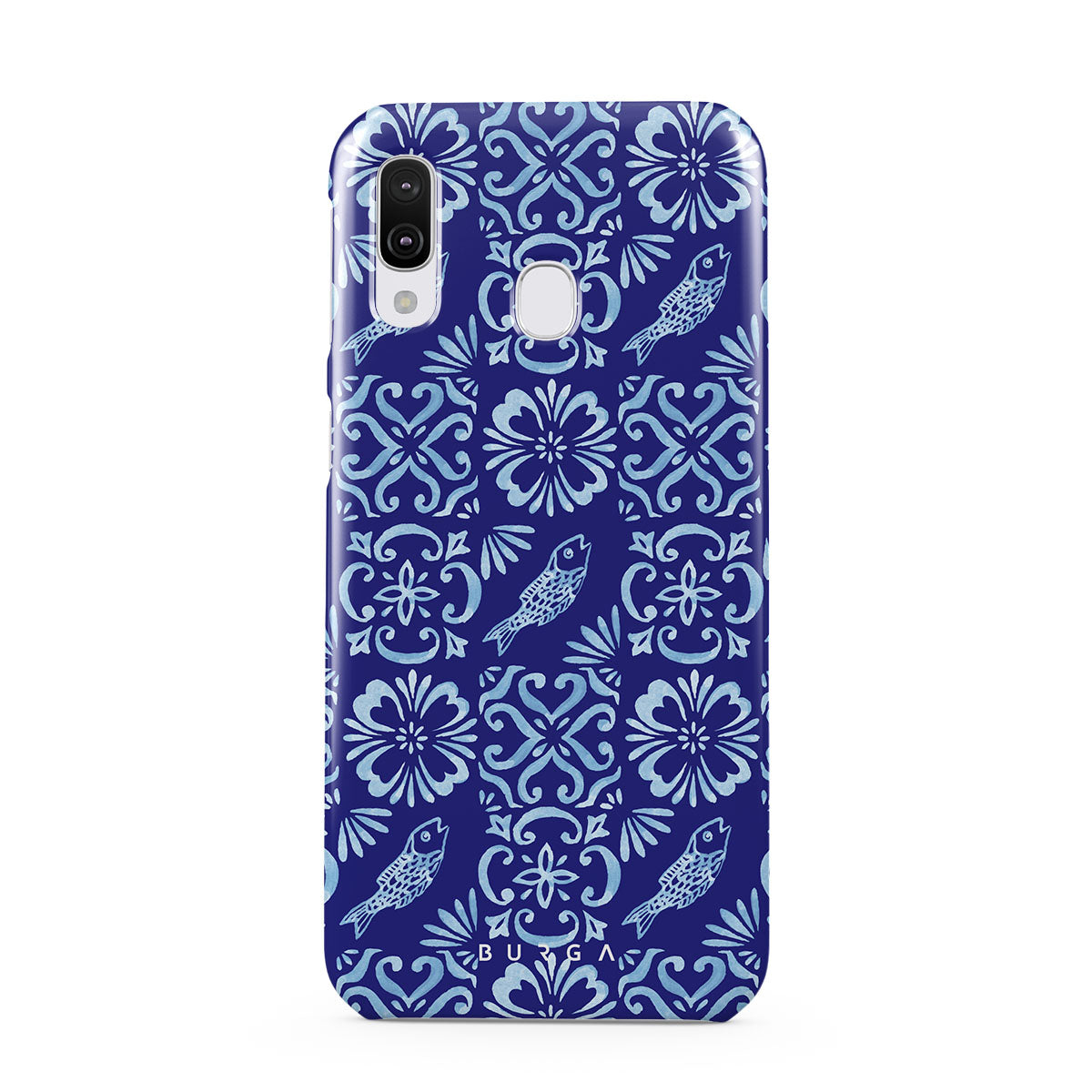此設計特色: 葡萄牙瓷砖图案,深蓝色,花卉图案,花朵,鱼类