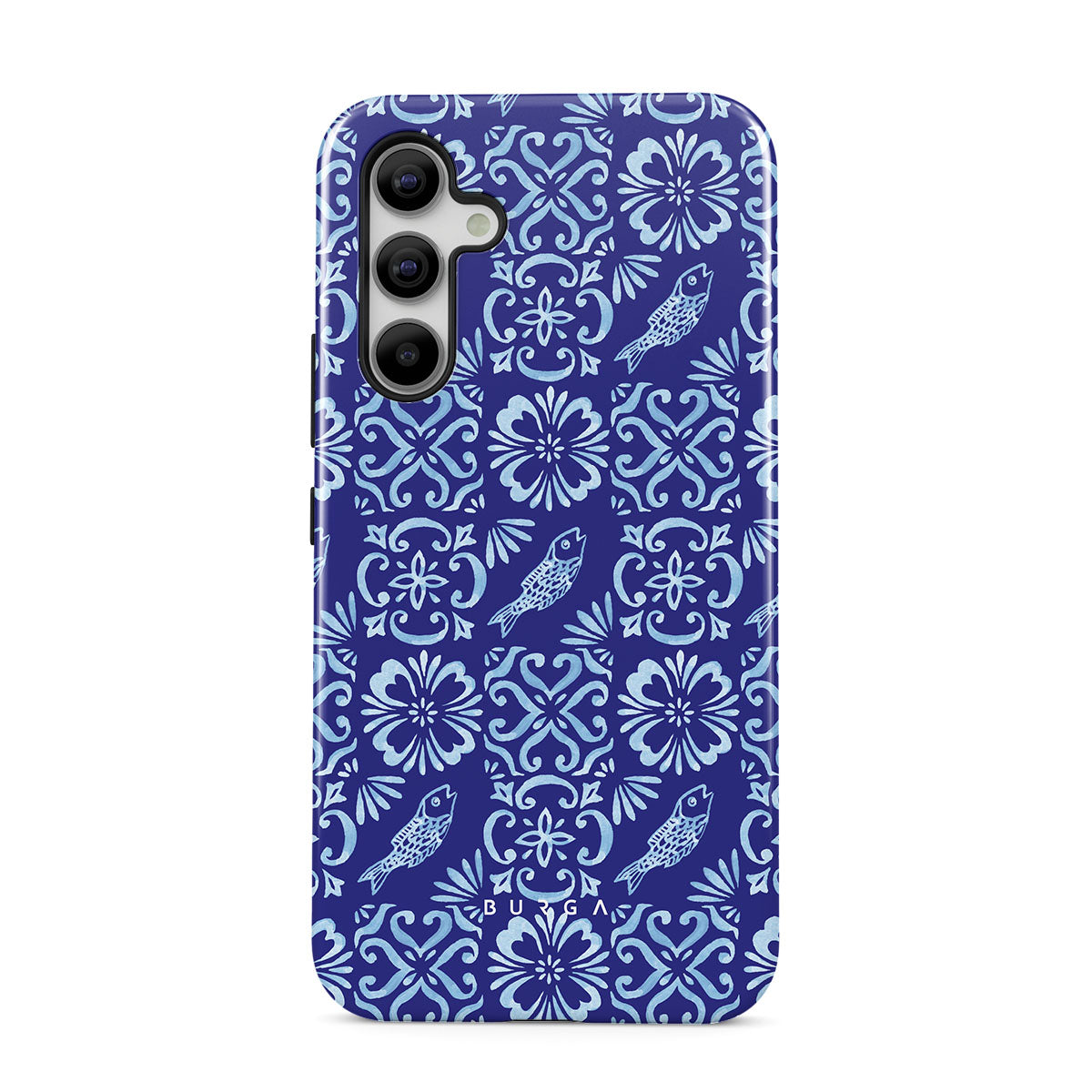 此設計特色: 葡萄牙瓷砖图案,深蓝色,花卉图案,花朵,鱼类