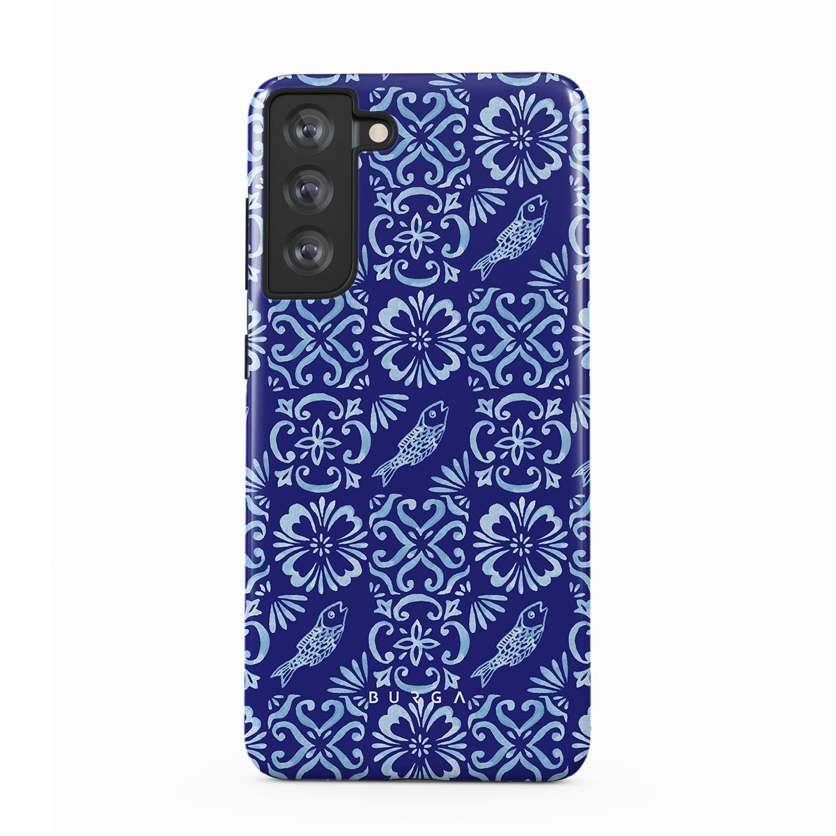 此設計特色: 葡萄牙瓷砖图案,深蓝色,花卉图案,花朵,鱼类