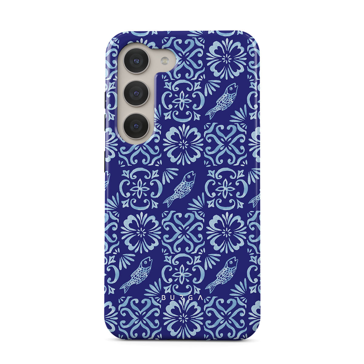 此設計特色: 葡萄牙瓷砖图案,深蓝色,花卉图案,花朵,鱼类