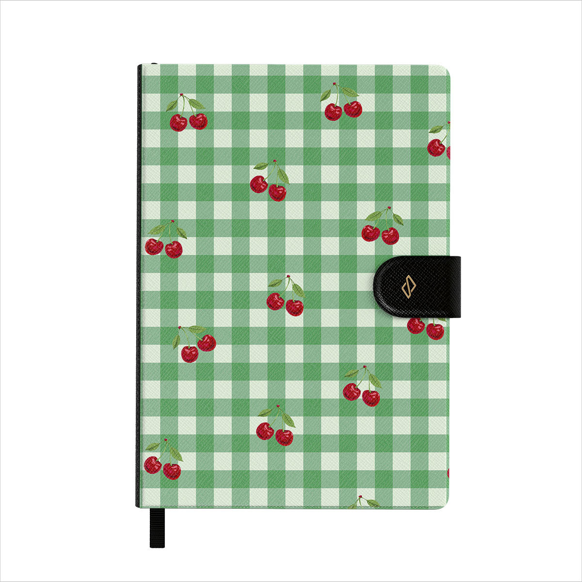 BURGA 精心設計的圖案,搭配 Vegan Faux 皮革封面,頂部配有優雅的黑色絲帶書籤。