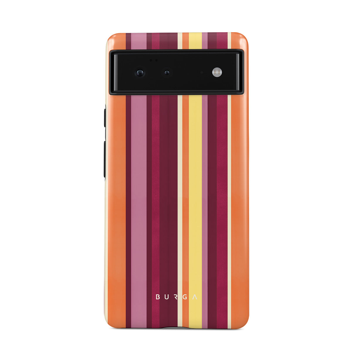此設計特色: 橙色與紫色條紋、熱情果顏色、熱帶圖案