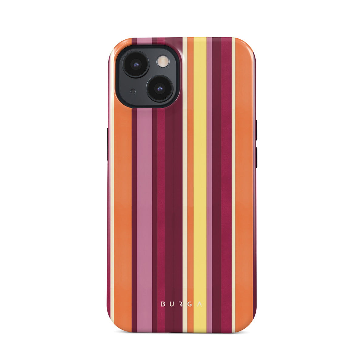 此設計特色: 橙色與紫色條紋、熱情果顏色、熱帶圖案