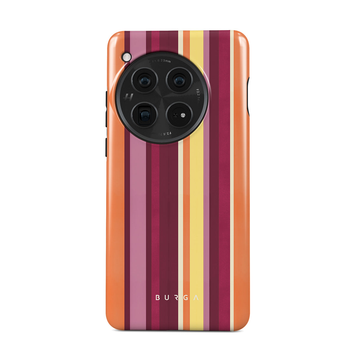 此設計特色: 橙色與紫色條紋、熱情果顏色、熱帶圖案