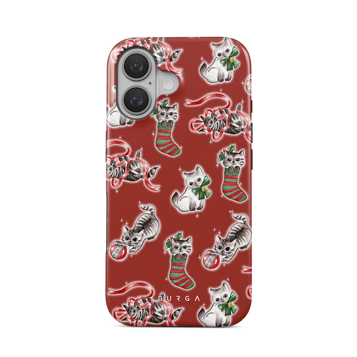 此設計特色:貓咪,聖誕襪,小貓,紅綠圖案,活潑的貓咪,聖誕裝飾品