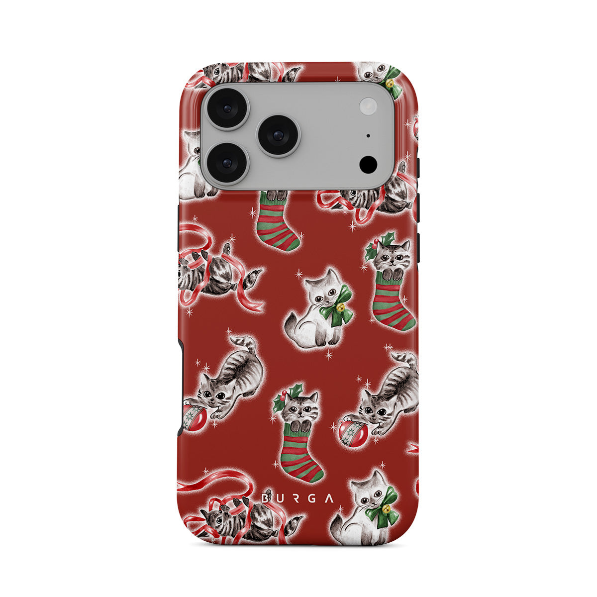 此設計特色:貓咪,聖誕襪,小貓,紅綠圖案,活潑的貓咪,聖誕裝飾品