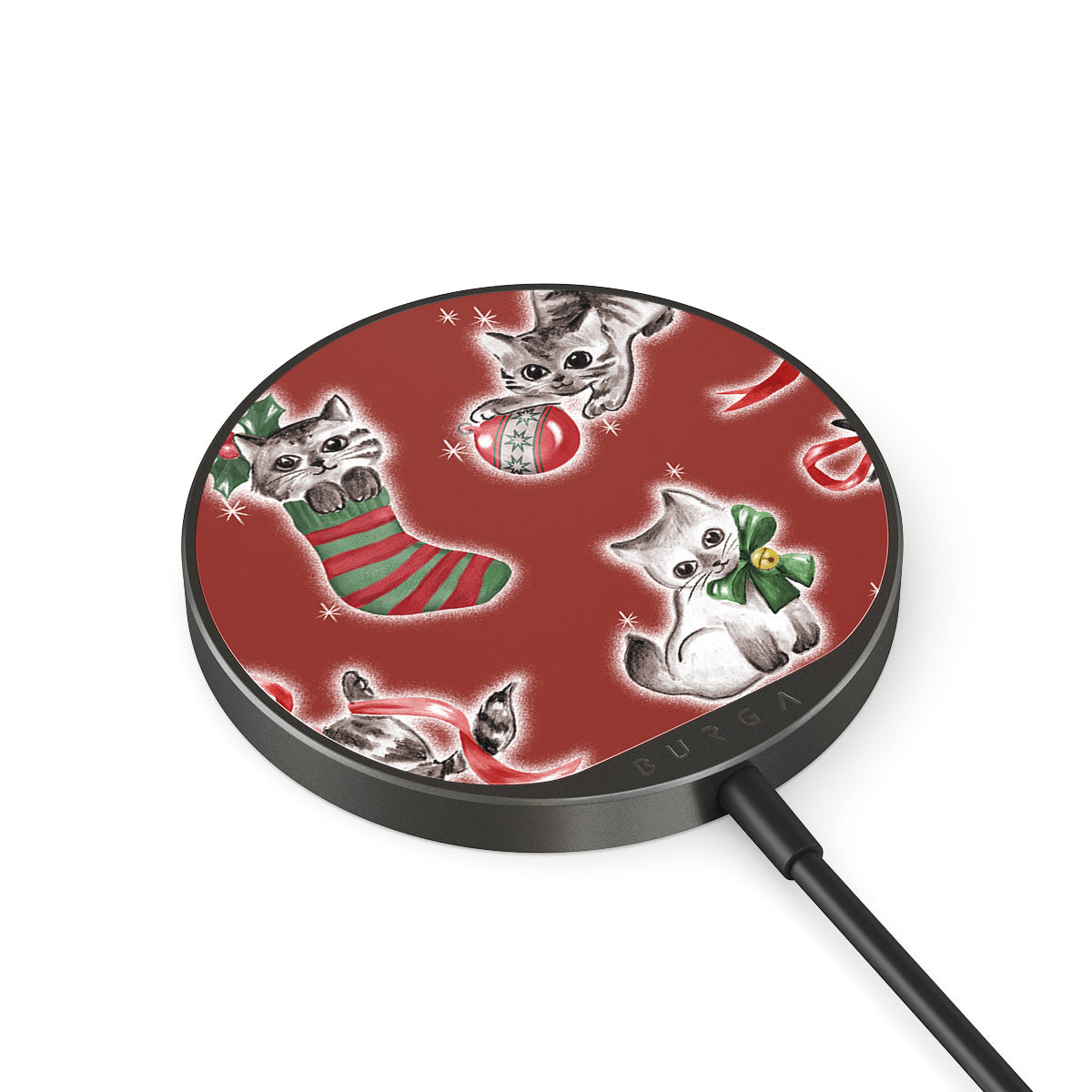 此設計特色:貓咪,聖誕襪,小貓,紅綠圖案,活潑的貓咪,聖誕裝飾品