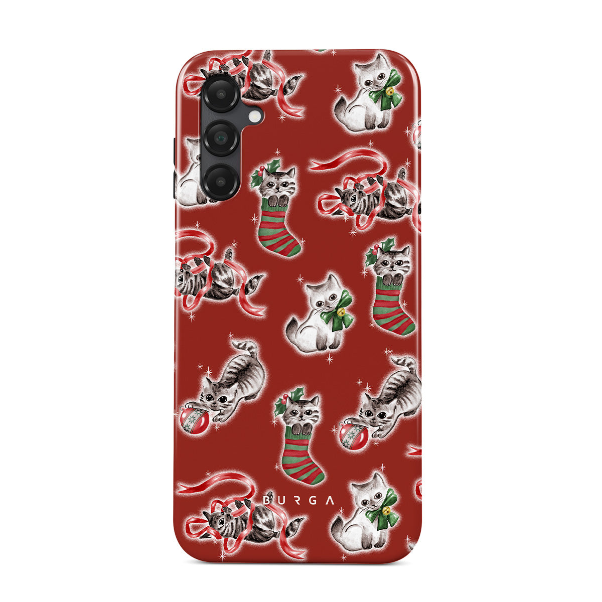 此設計特色:貓咪,聖誕襪,小貓,紅綠圖案,活潑的貓咪,聖誕裝飾品