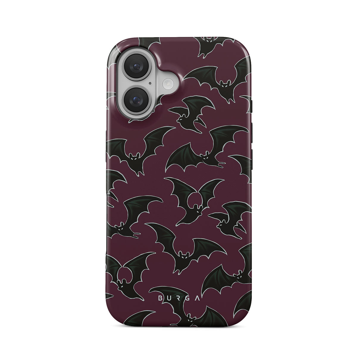 此設計特色:萬聖節主題、蝙蝠、酒紅色背景