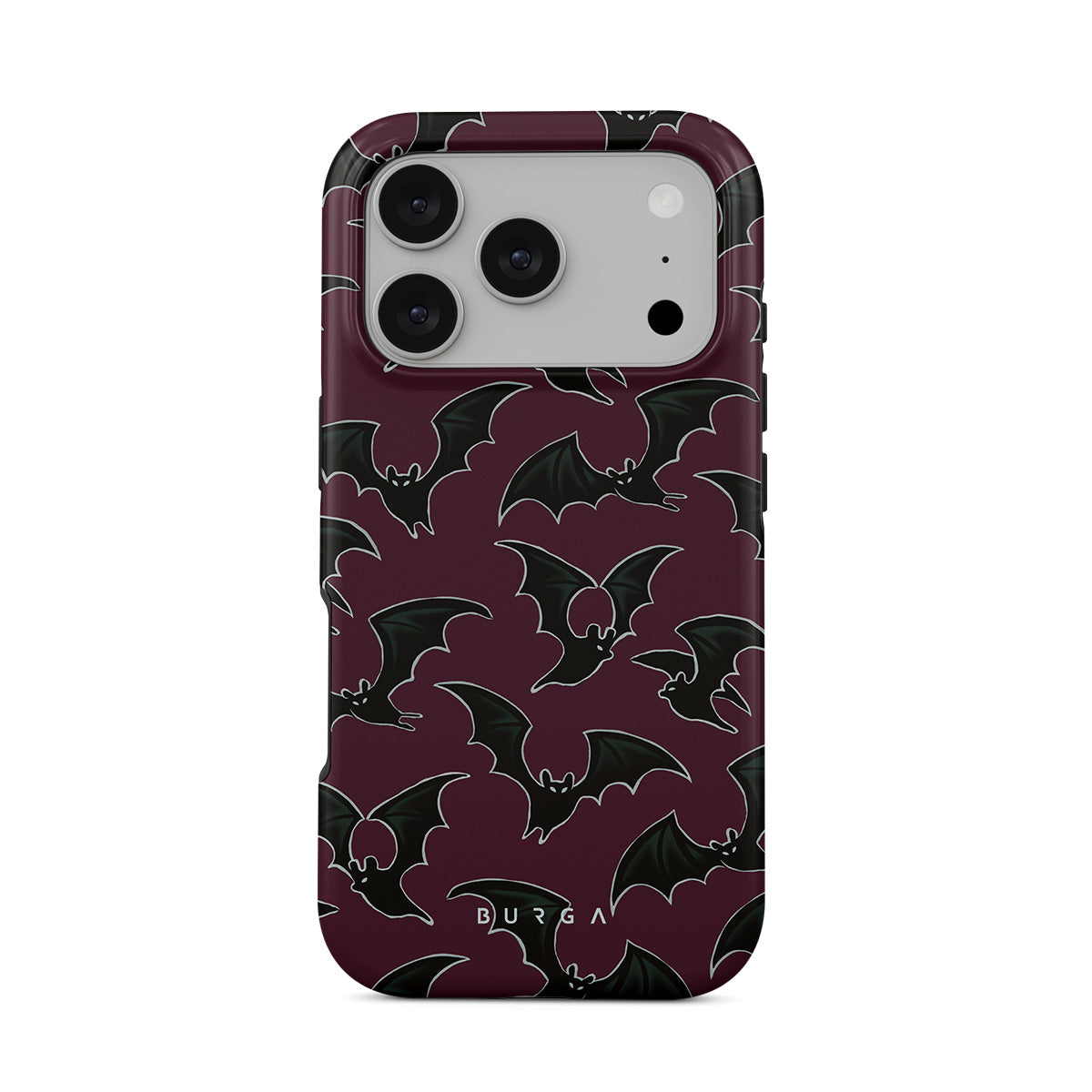 此設計特色:萬聖節主題、蝙蝠、酒紅色背景