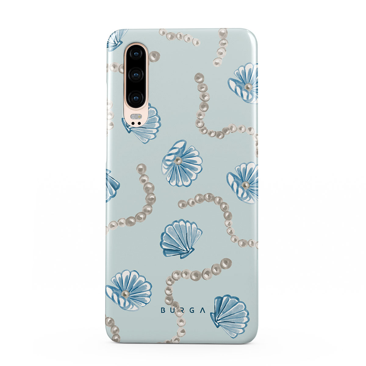 此設計特色:珍珠,海螺,淺藍色背景,海洋元素