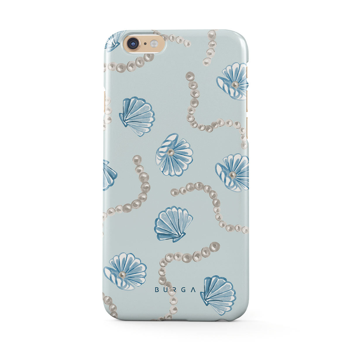 此設計特色:珍珠,海螺,淺藍色背景,海洋元素
