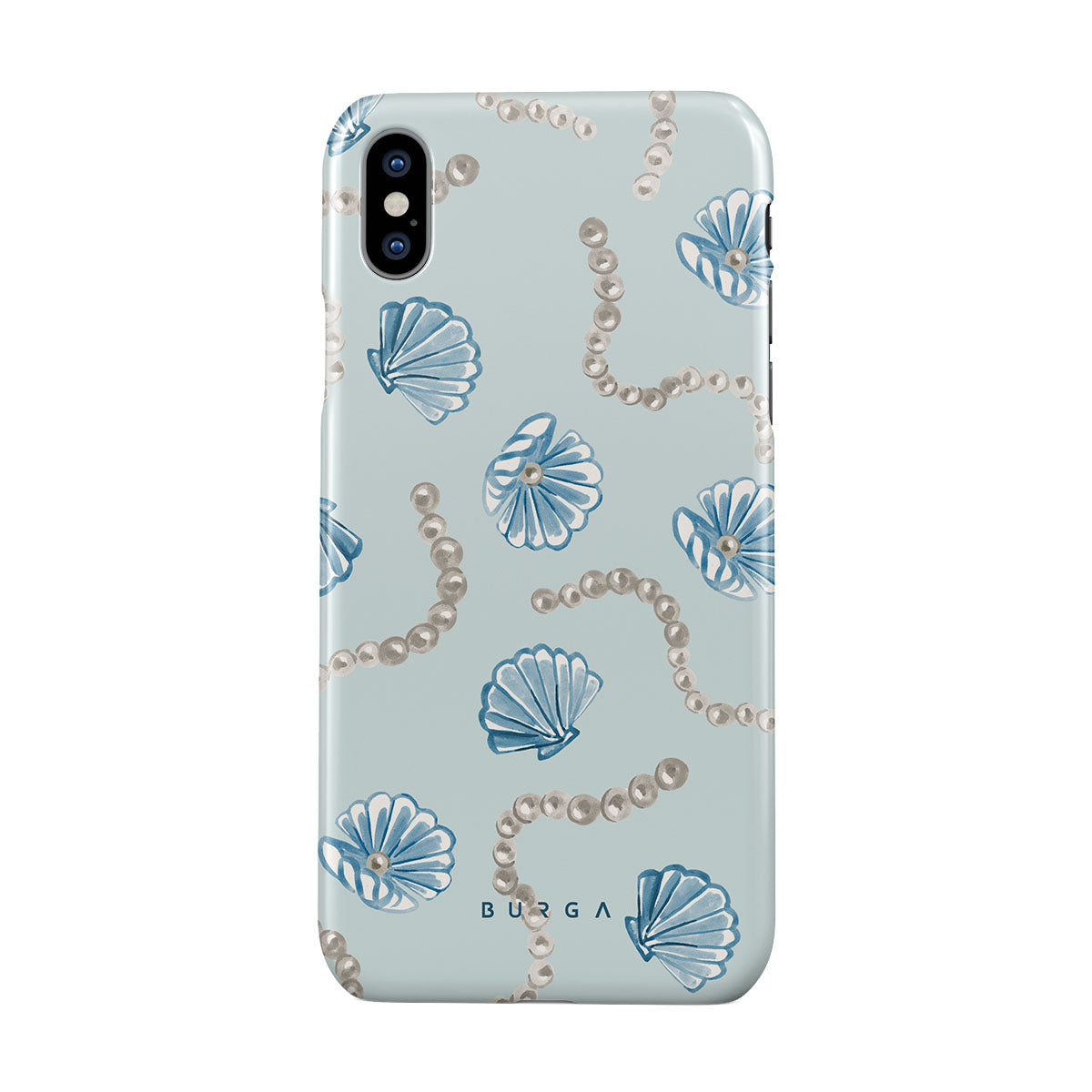 此設計特色:珍珠,海螺,淺藍色背景,海洋元素