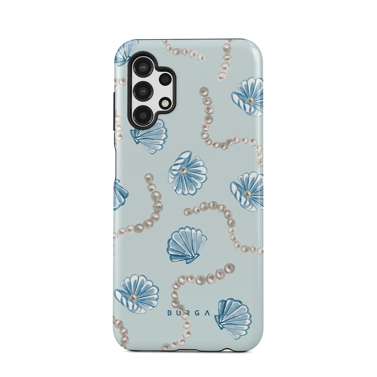 此設計特色:珍珠,海螺,淺藍色背景,海洋元素
