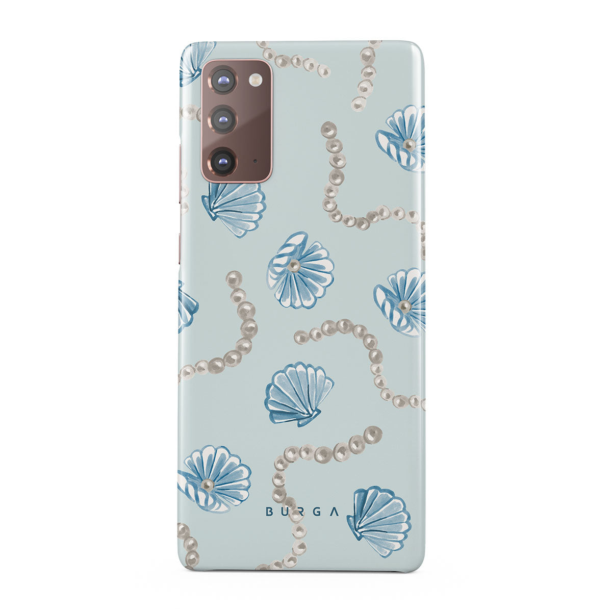 此設計特色:珍珠,海螺,淺藍色背景,海洋元素