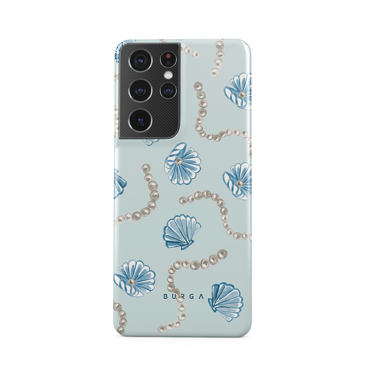 此設計特色:珍珠,海螺,淺藍色背景,海洋元素
