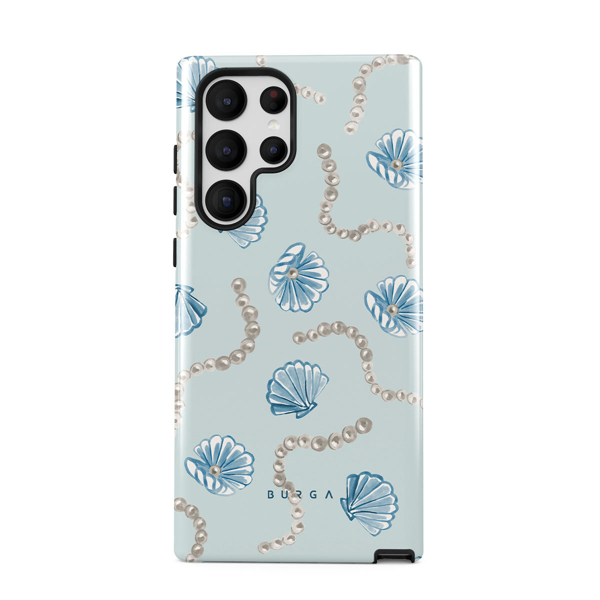 此設計特色:珍珠,海螺,淺藍色背景,海洋元素