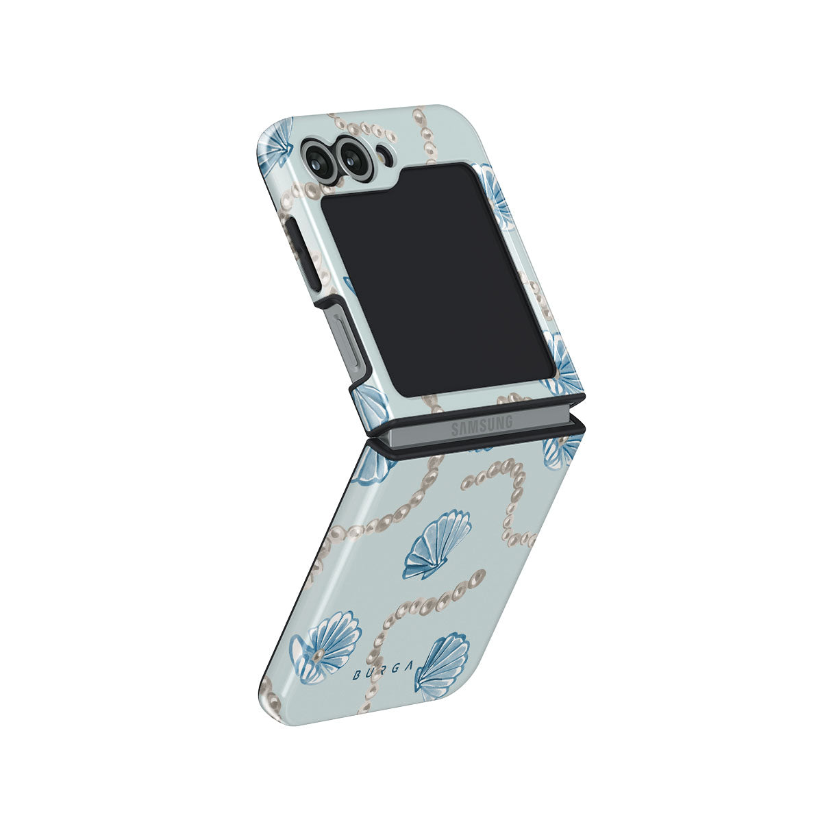 此設計特色:珍珠,海螺,淺藍色背景,海洋元素