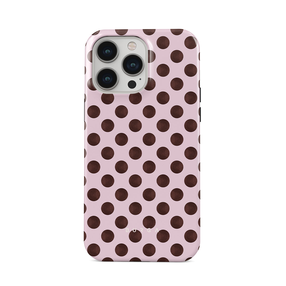 此設計特色: 復古波點圖案,粉紅色背景配上棕色圓點。
