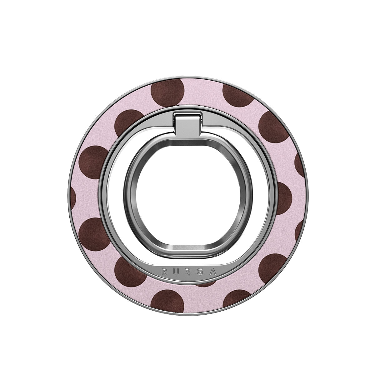 這款磁吸指環支架喀一聲即可穩穩吸附,不需黏膠、不麻煩。滑手機時可以單手使用,也可以追劇時當作支架,抑或作為搭配 BURGA 手機殼的時尚配件。