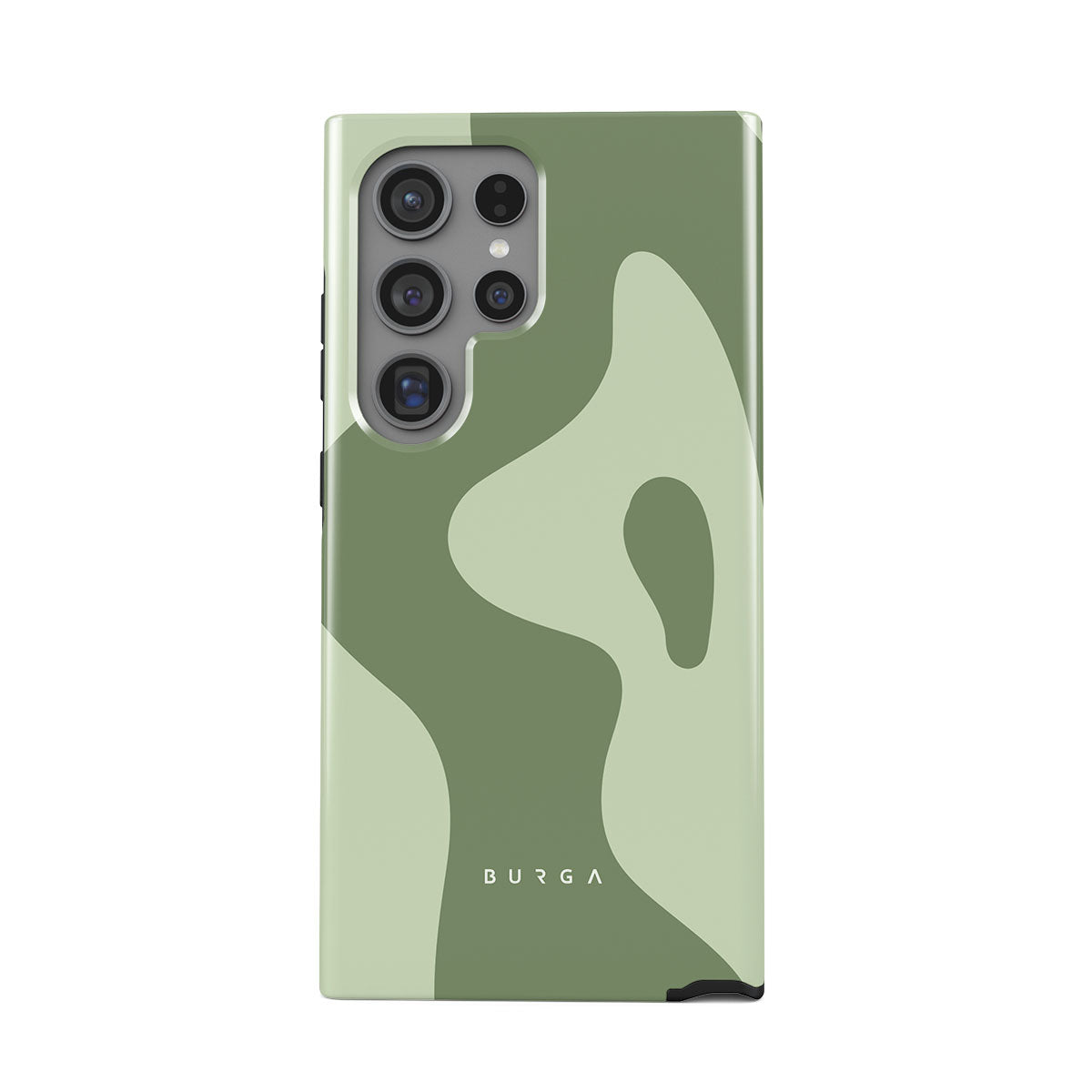 此設計特色:波浪,抽象圖案,淺綠色漩渦,深綠色漩渦.