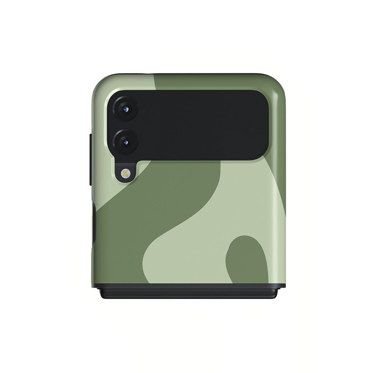 此設計特色:波浪,抽象圖案,淺綠色漩渦,深綠色漩渦.