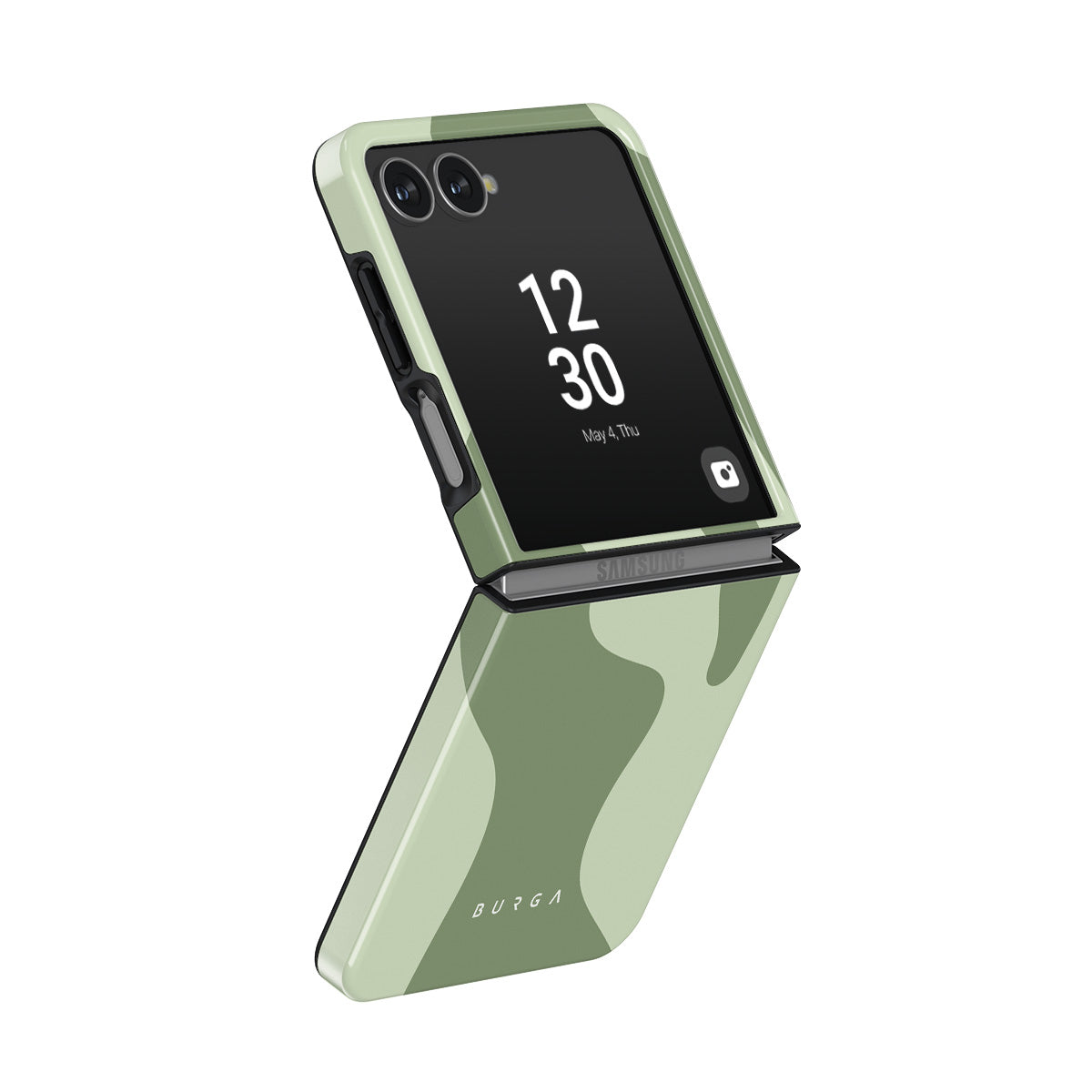 此設計特色:波浪,抽象圖案,淺綠色漩渦,深綠色漩渦.