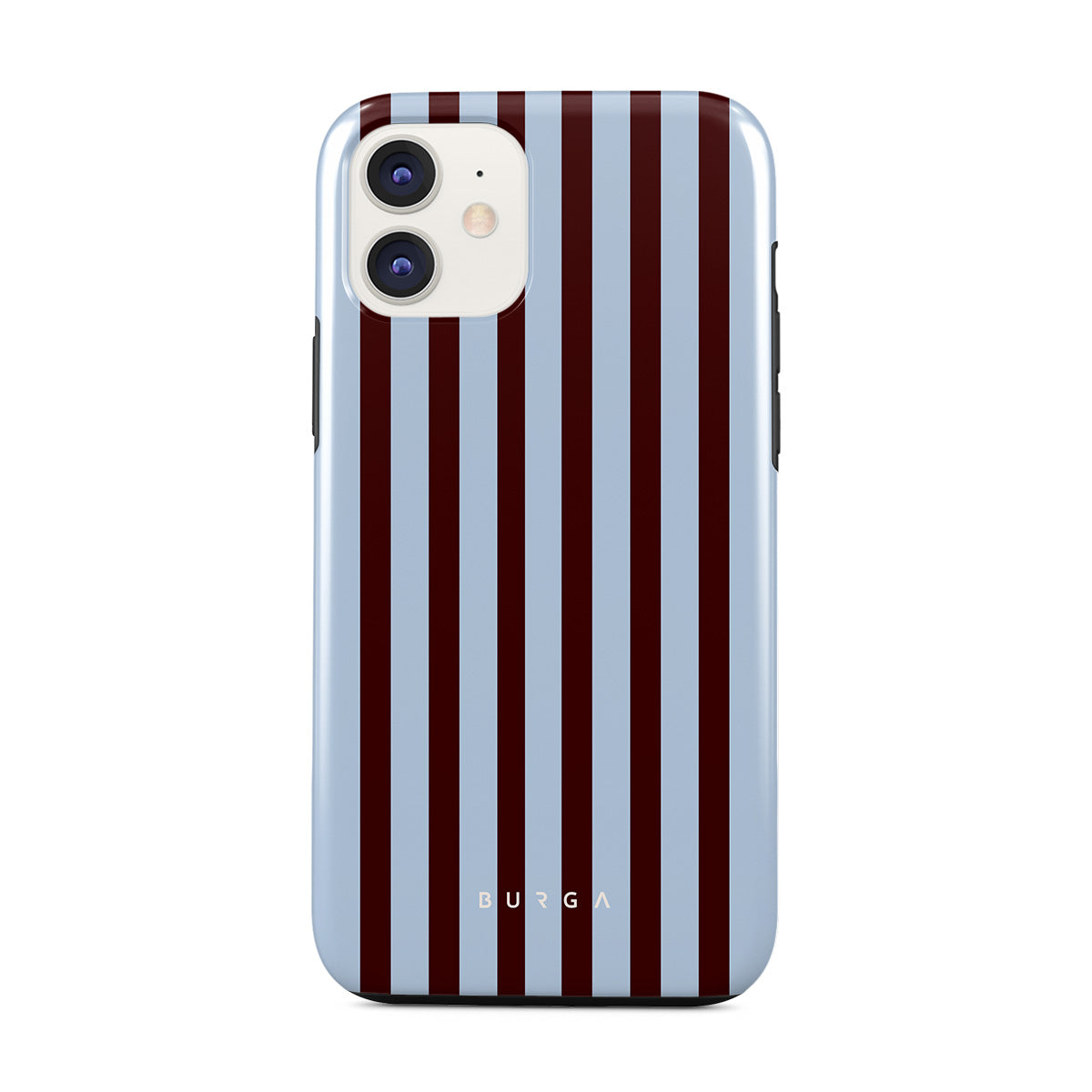此設計特色: 棕色與嬰兒藍的直條紋。