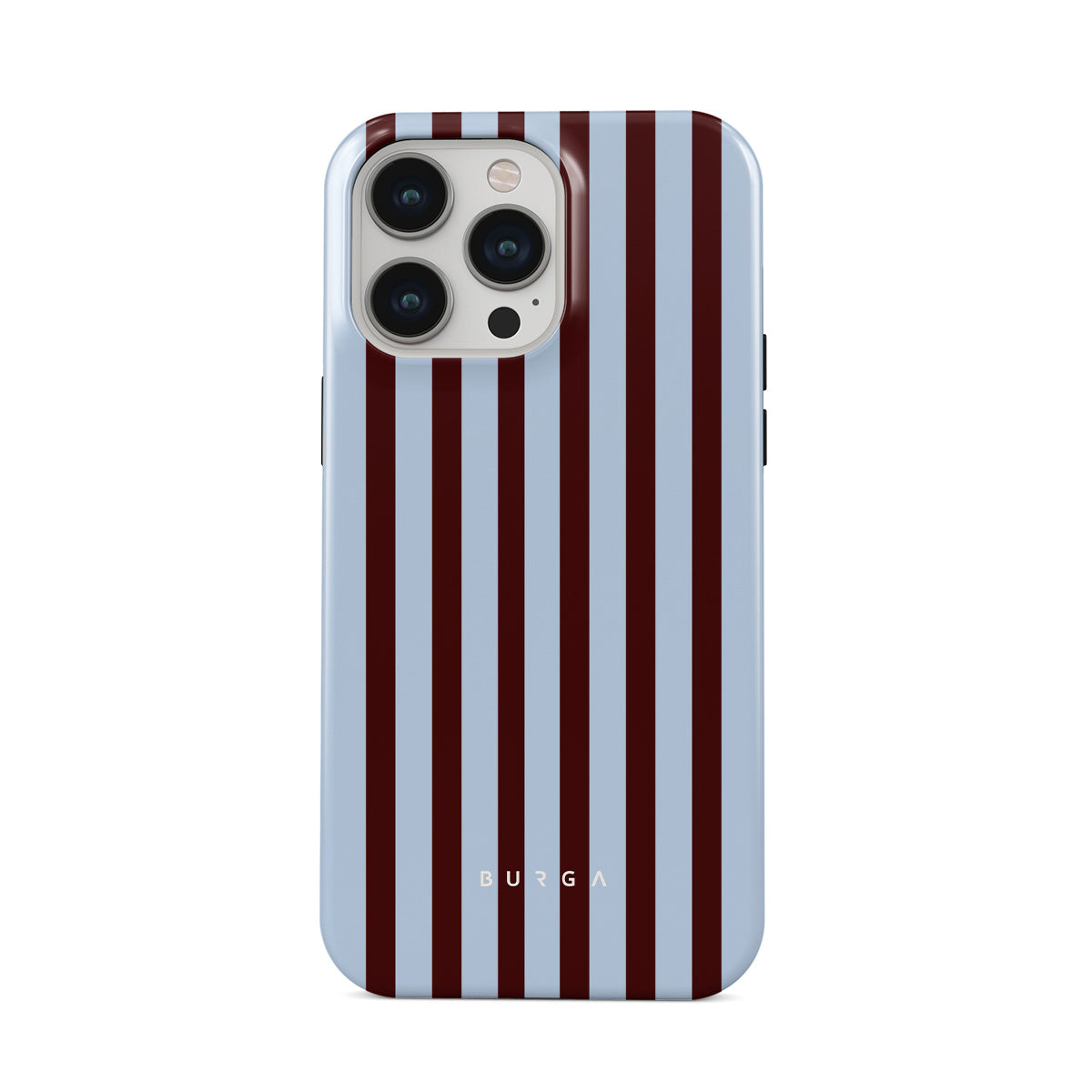 此設計特色: 棕色與嬰兒藍的直條紋。