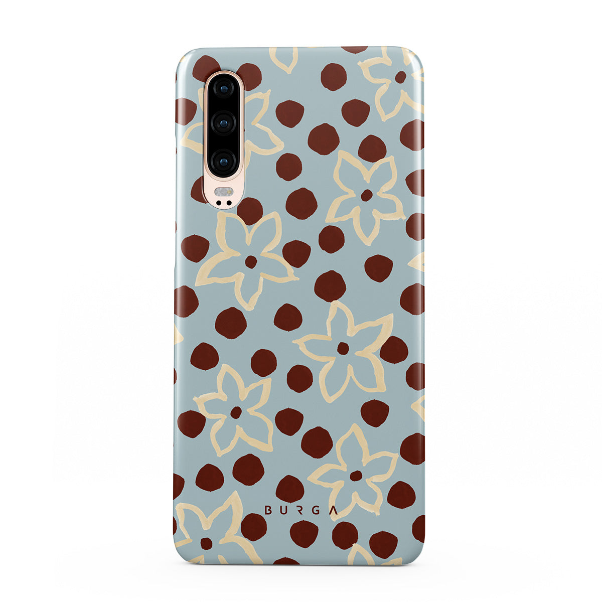 此設計特色: 花卉、點點圖案、淺藍色背景