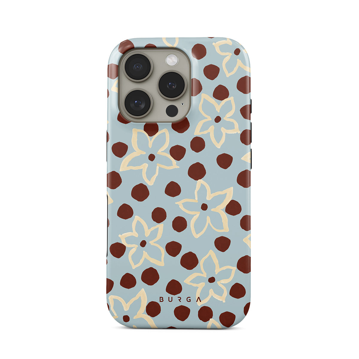 此設計特色: 花卉、點點圖案、淺藍色背景
