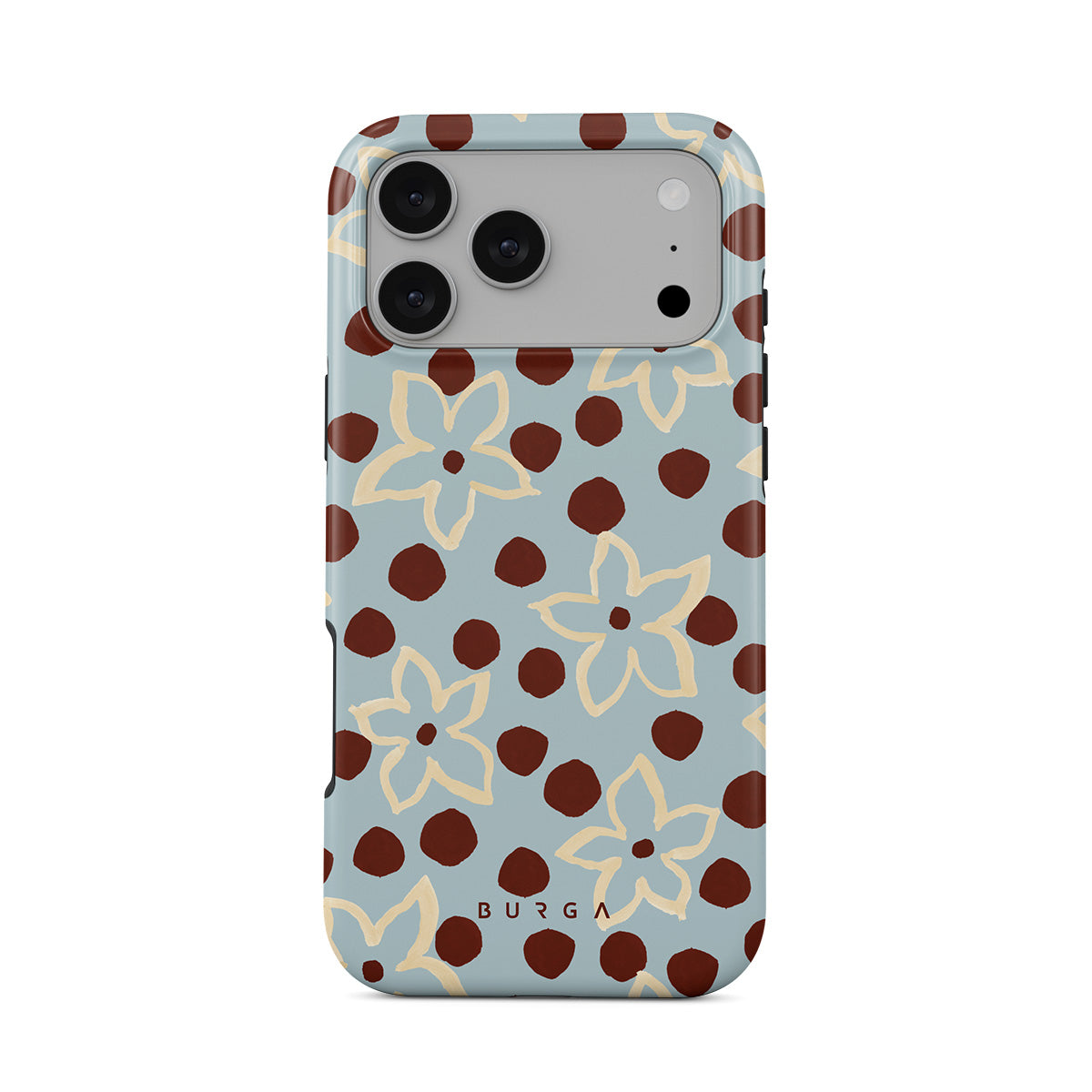 此設計特色: 花卉、點點圖案、淺藍色背景
