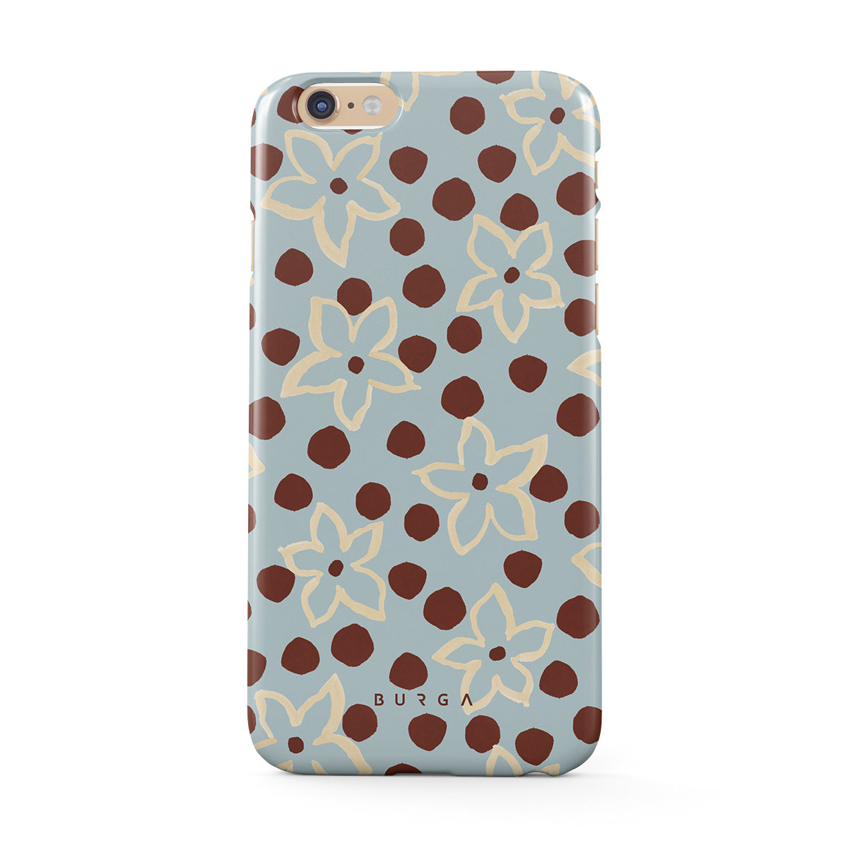 此設計特色: 花卉、點點圖案、淺藍色背景