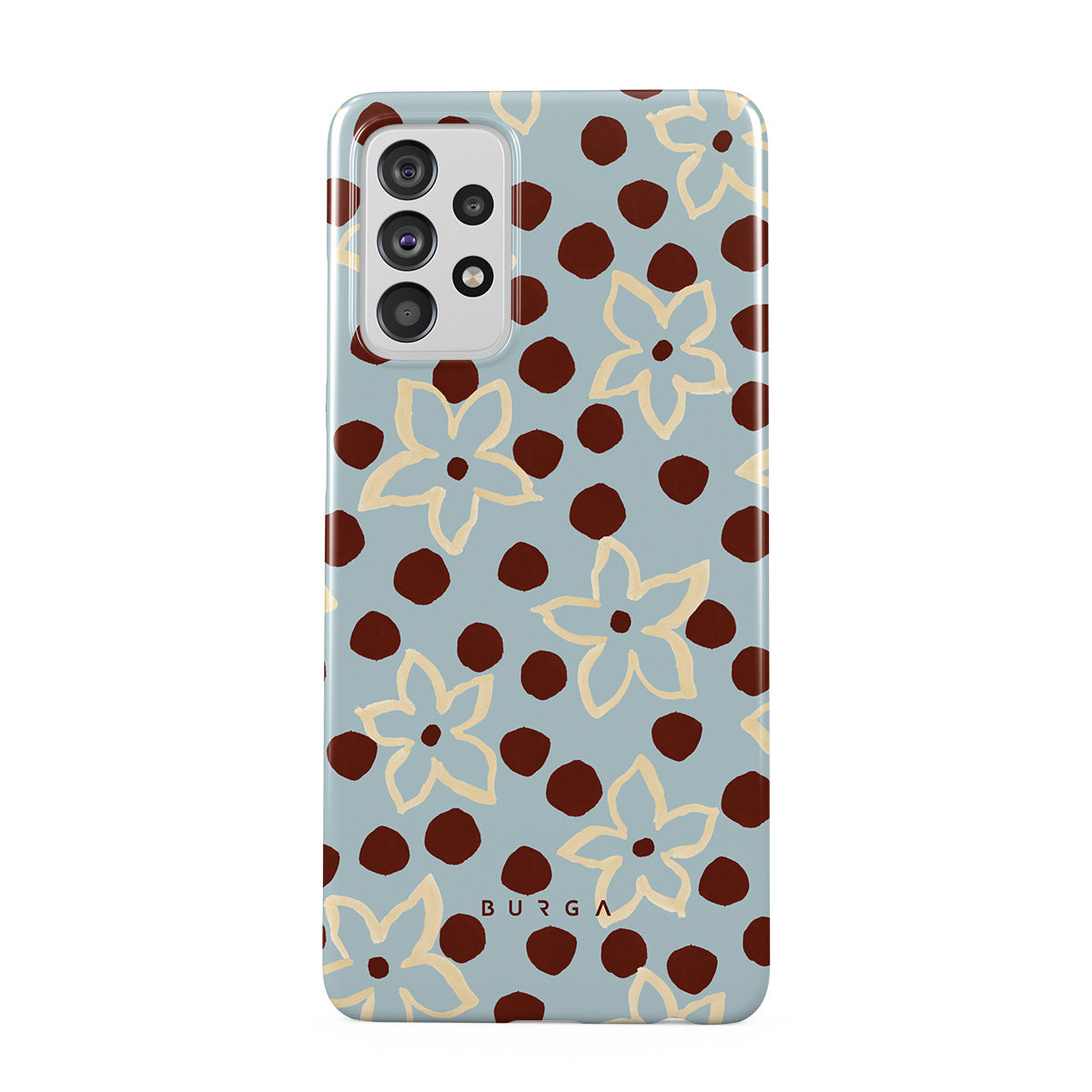 此設計特色: 花卉、點點圖案、淺藍色背景