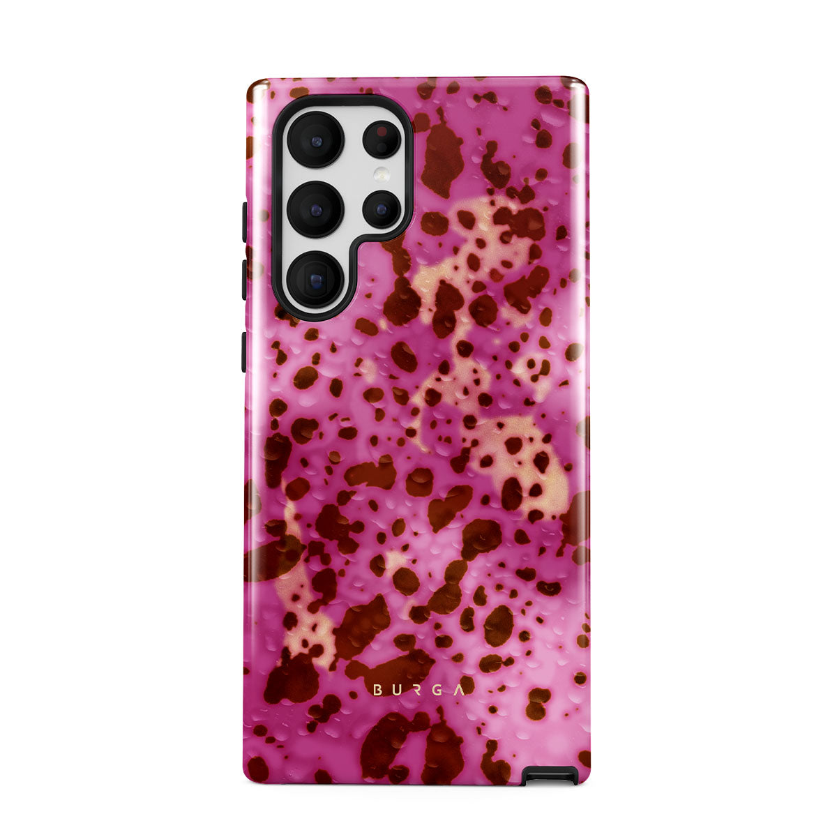 此設計特色:粉紅豹紋,品紅色背景,動物印花