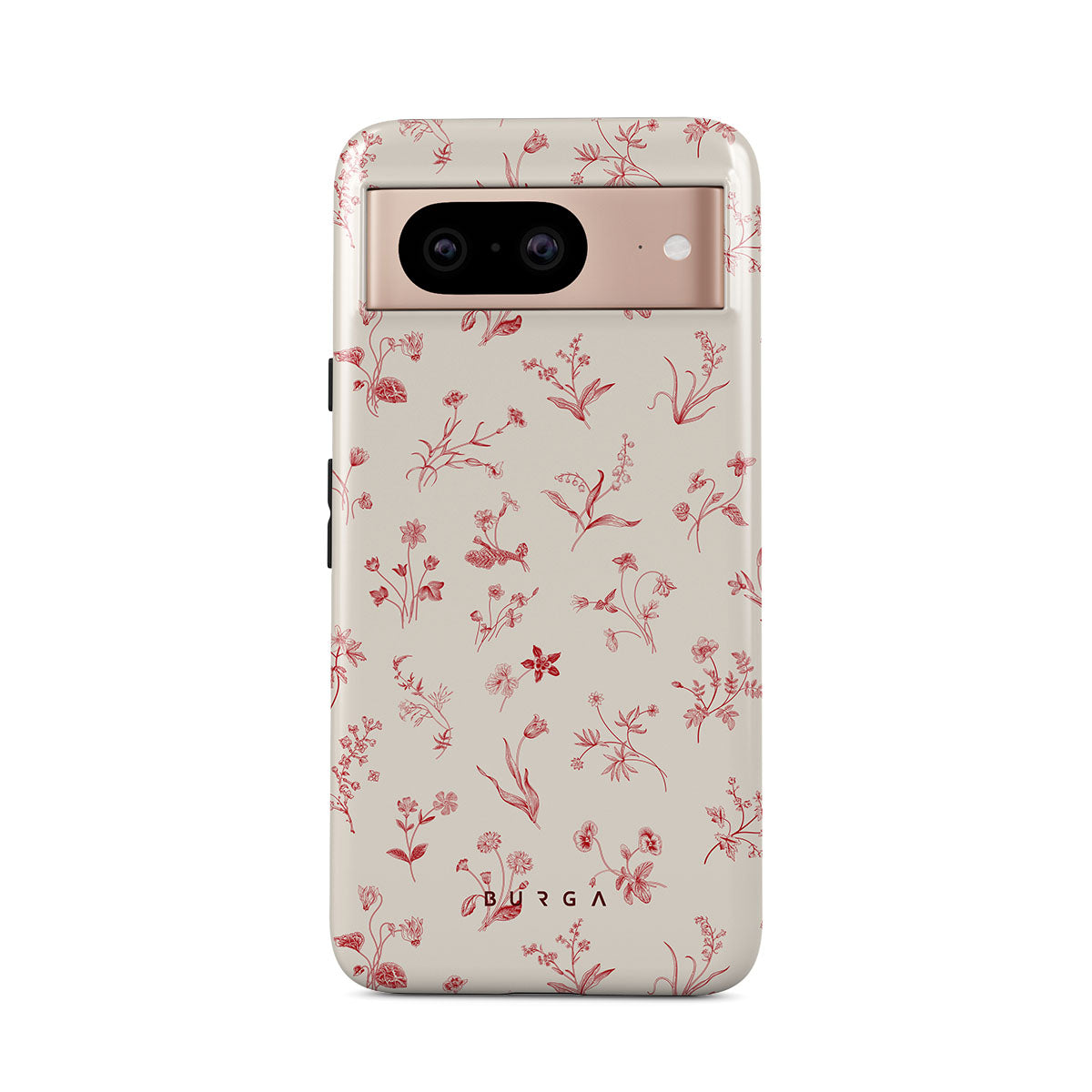 這款手機殼的設計元素包括花卉圖案、復古風格、浪漫情調、乳白色背景和女性風格的印花。
