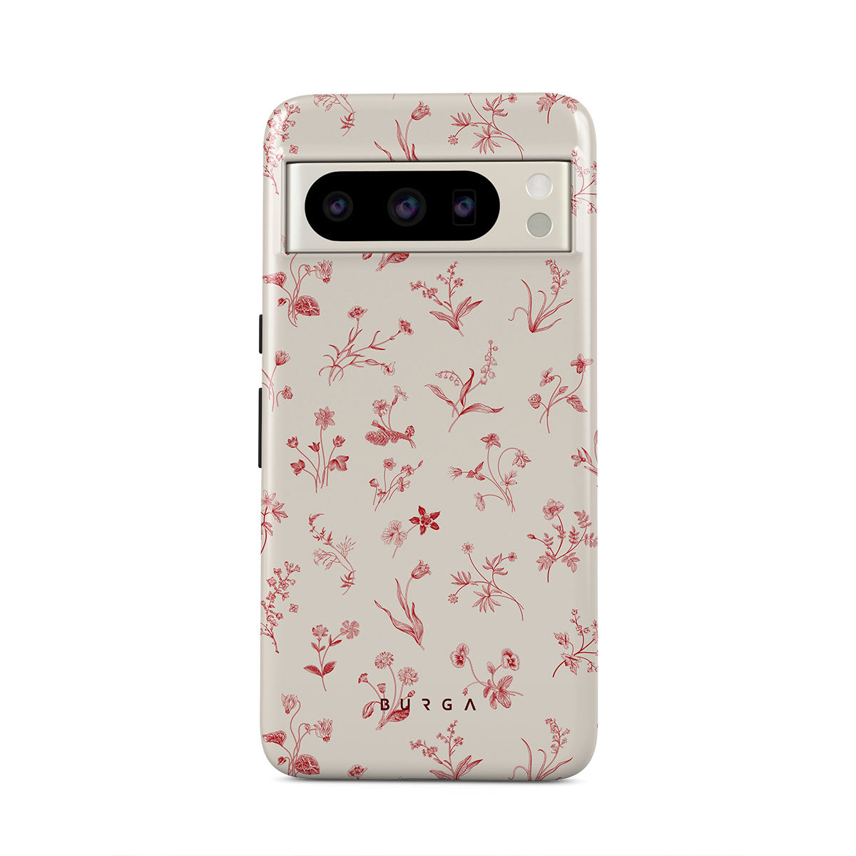 這款手機殼的設計元素包括花卉圖案、復古風格、浪漫情調、乳白色背景和女性風格的印花。