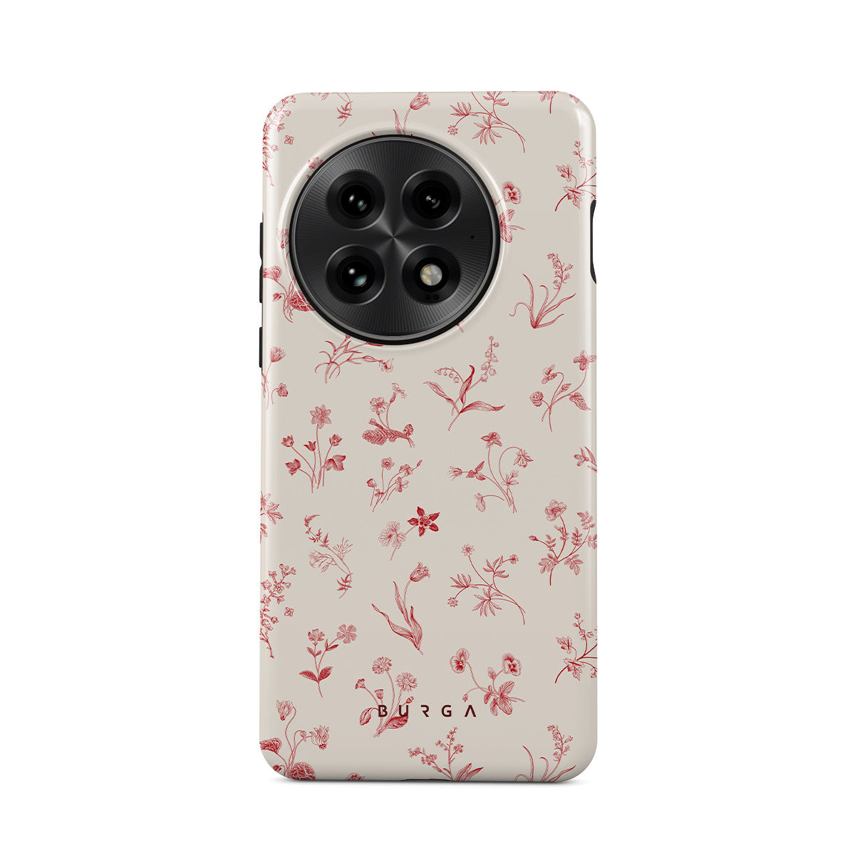 這款手機殼的設計元素包括花卉圖案、復古風格、浪漫情調、乳白色背景和女性風格的印花。