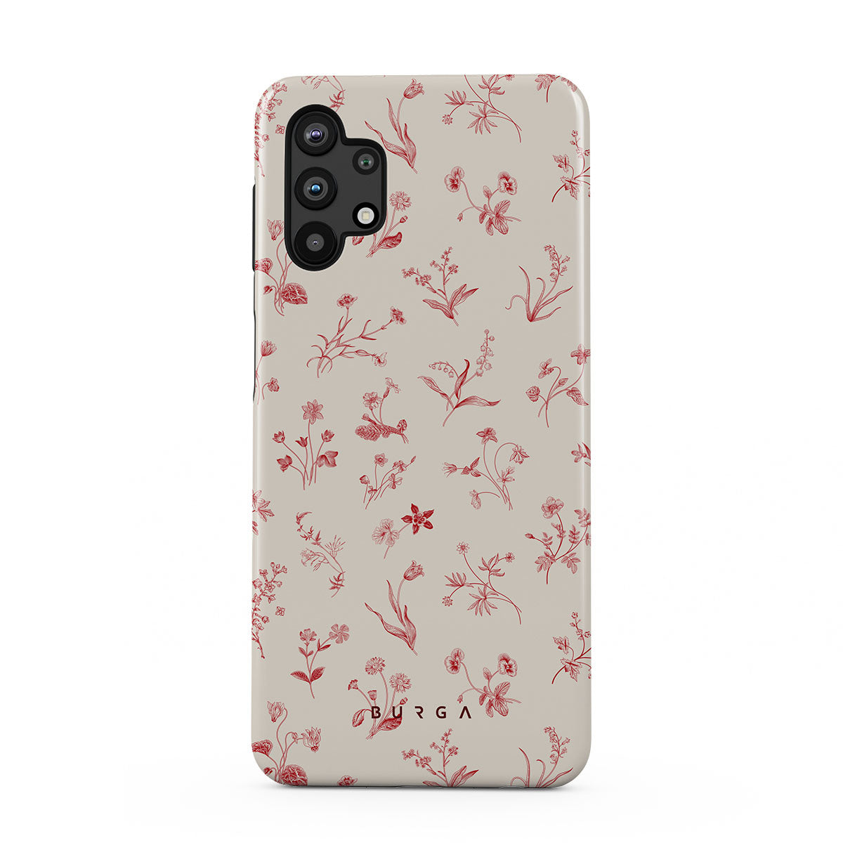這款手機殼的設計元素包括花卉圖案、復古風格、浪漫情調、乳白色背景和女性風格的印花。