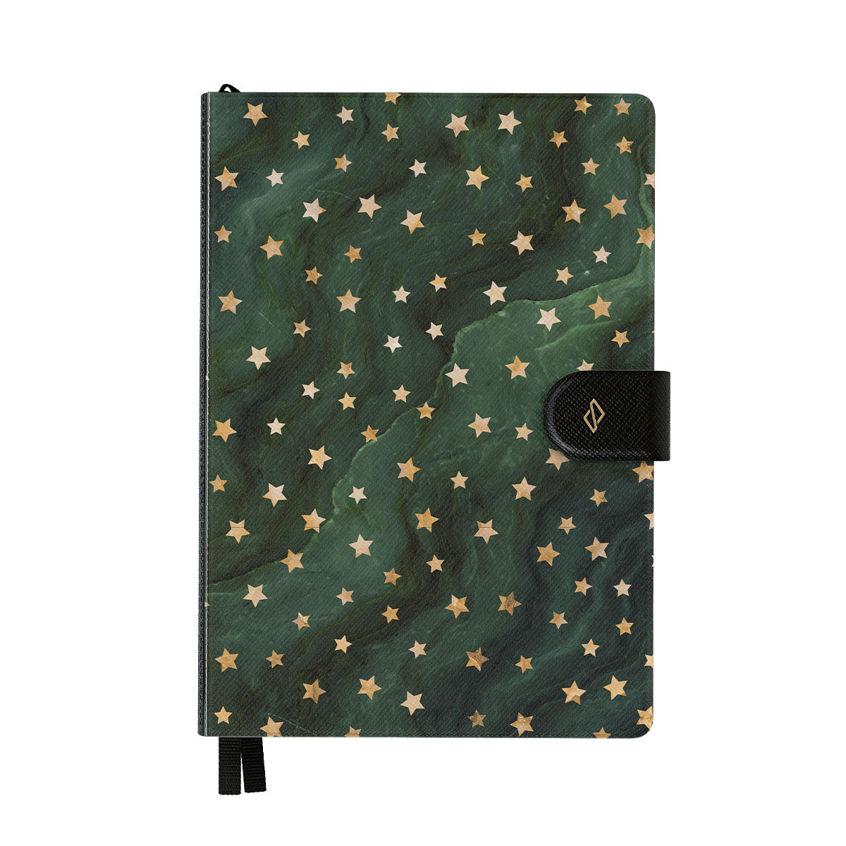- 黑色封底附有金色金屬徽標