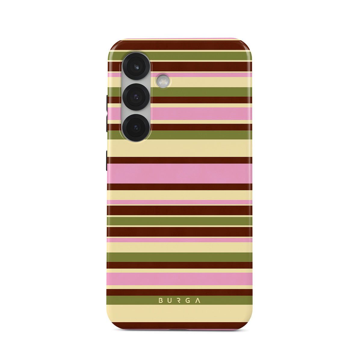 此設計特色: 粉紅色、黃色與綠色的柔和條紋、夏季圖案