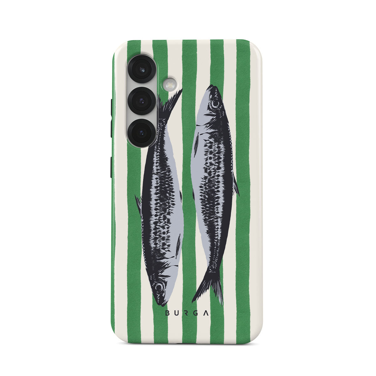 此設計特色:沙丁魚、綠色條紋、海洋圖案
