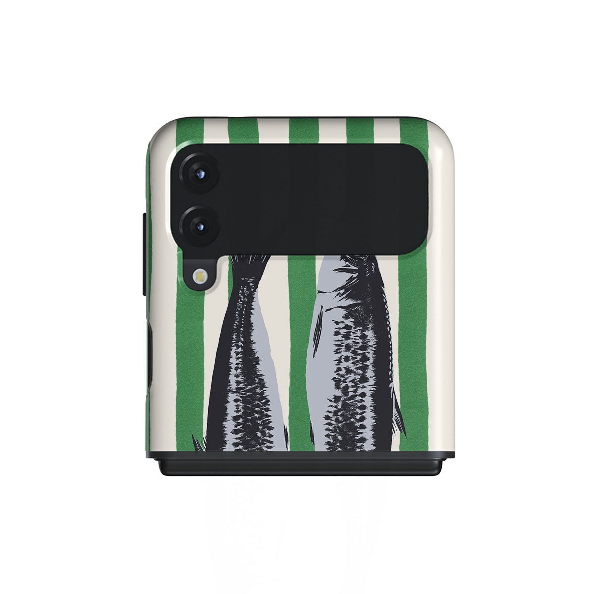 此設計特色:沙丁魚、綠色條紋、海洋圖案