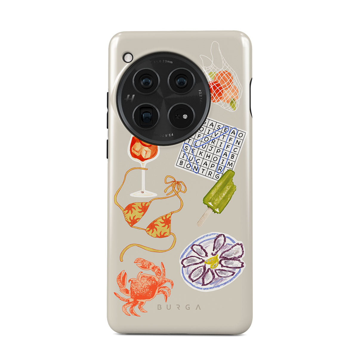 此設計特色:螃蟹、生蠔拼盤、冰棒、填字遊戲、Spritz雞尾酒、比基尼上衣、水果