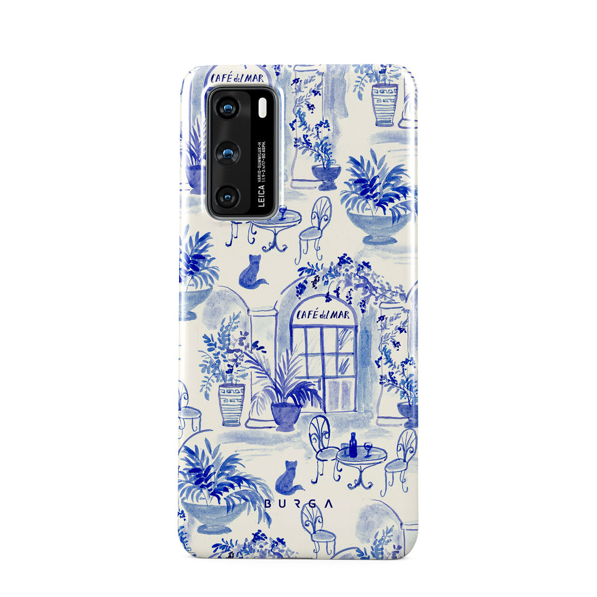此設計特色:柔和的藍色、海岸圖案、咖啡元素、極簡風格、復古圖案、地中海圖案