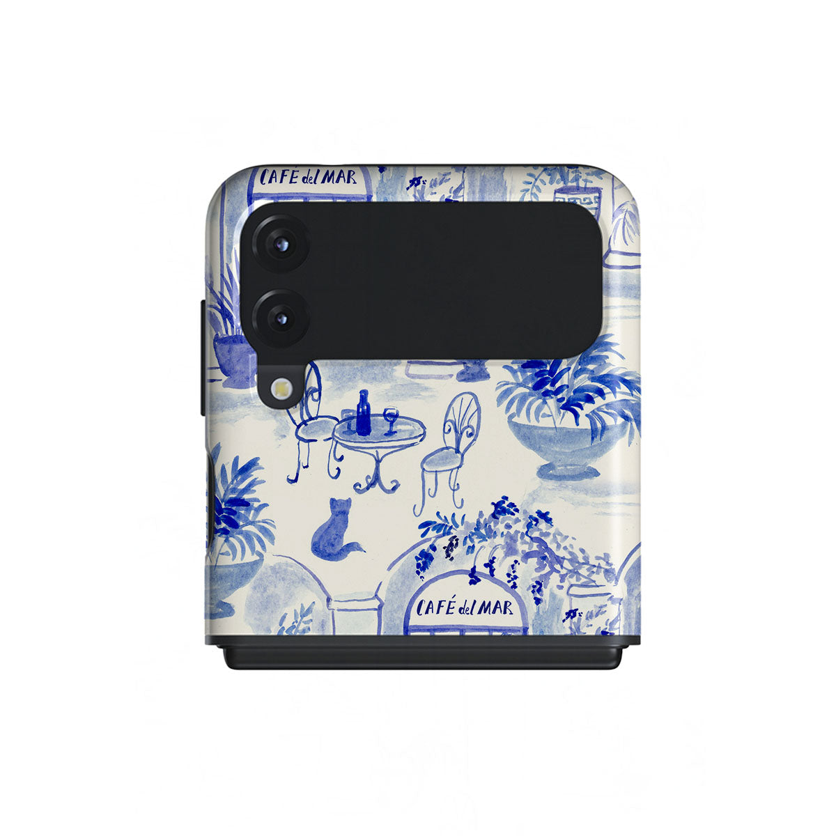 此設計特色:柔和的藍色、海岸圖案、咖啡元素、極簡風格、復古圖案、地中海圖案