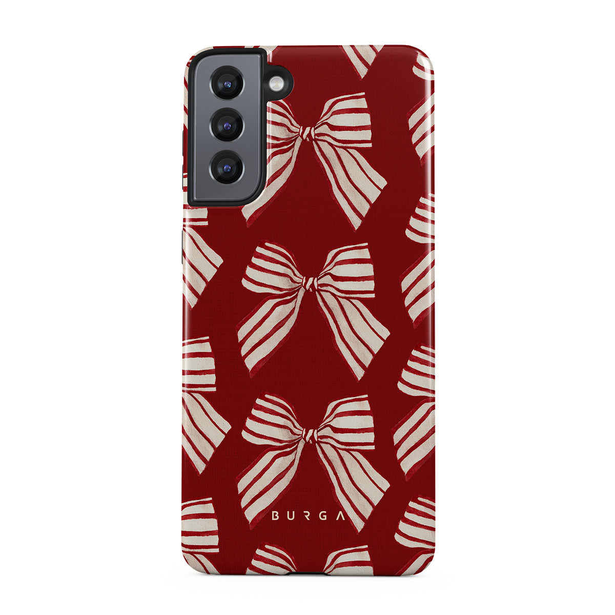 設計元素包含:蝴蝶結、條紋、紅色、白色、節日圖案
