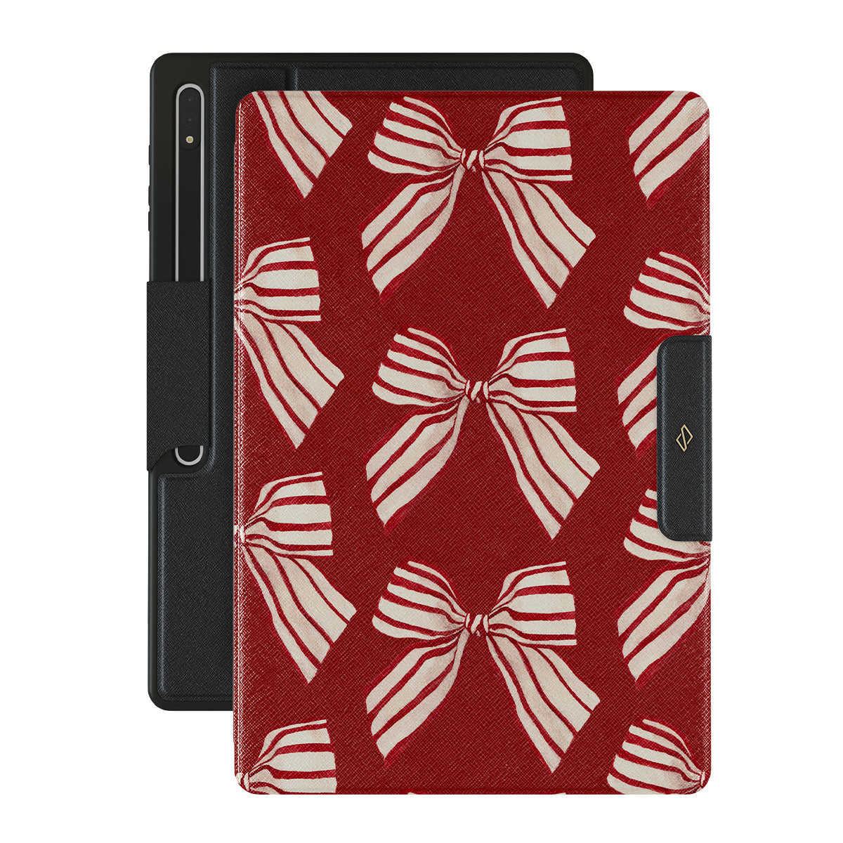 設計元素包含:蝴蝶結、條紋、紅色、白色、節日圖案
