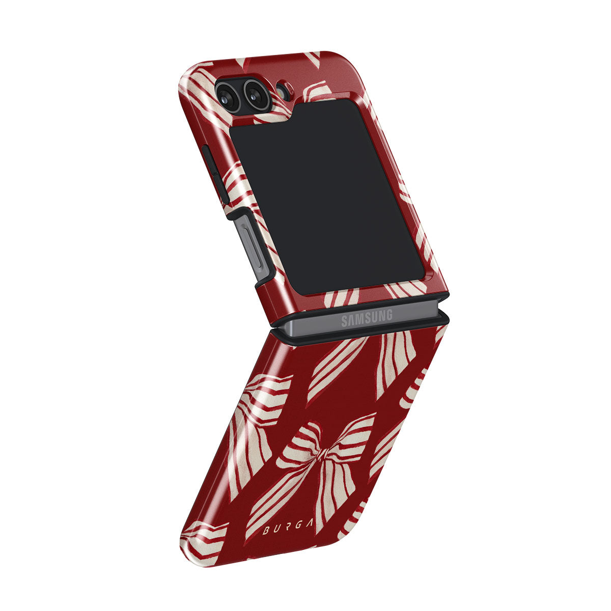 設計元素包含:蝴蝶結、條紋、紅色、白色、節日圖案
