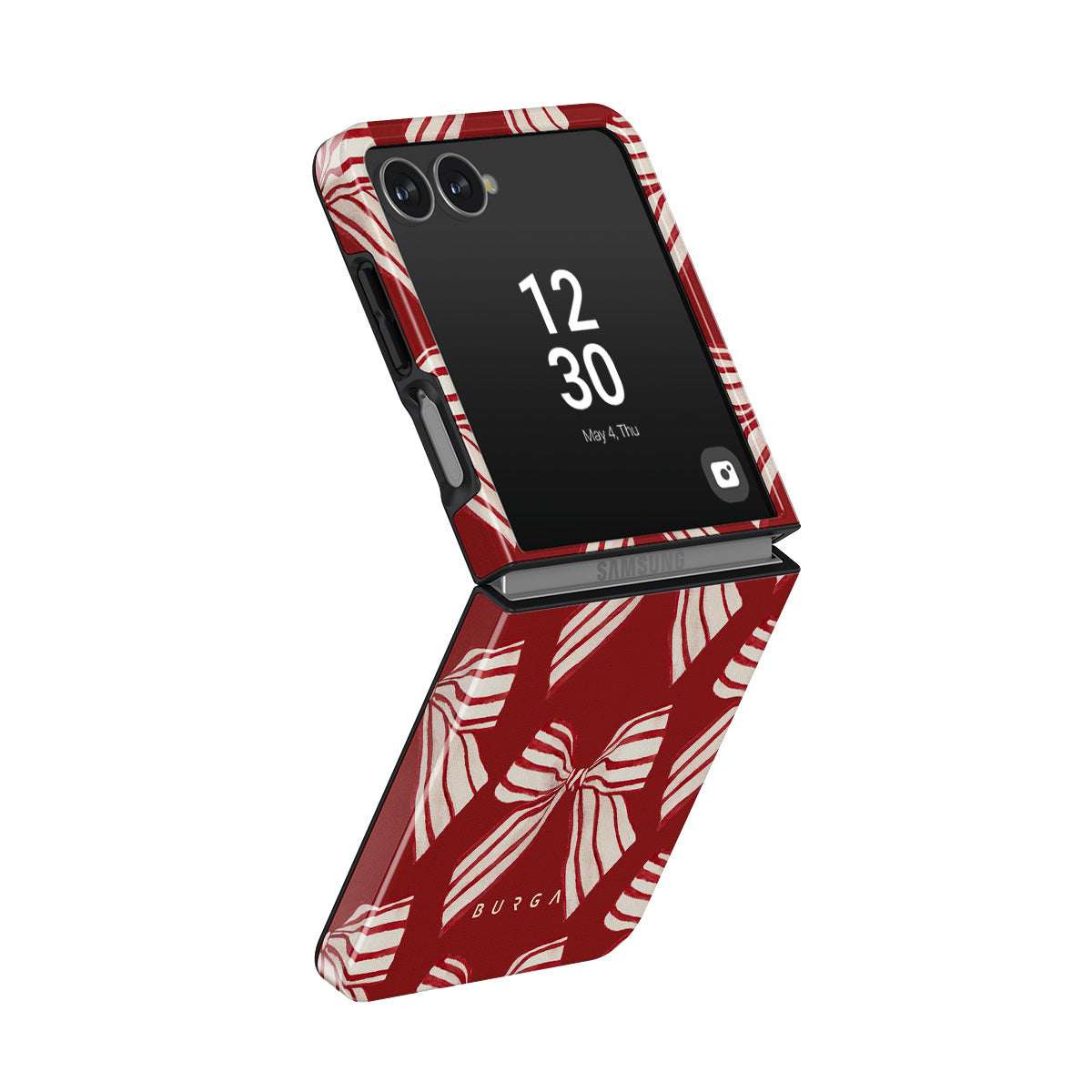 設計元素包含:蝴蝶結、條紋、紅色、白色、節日圖案